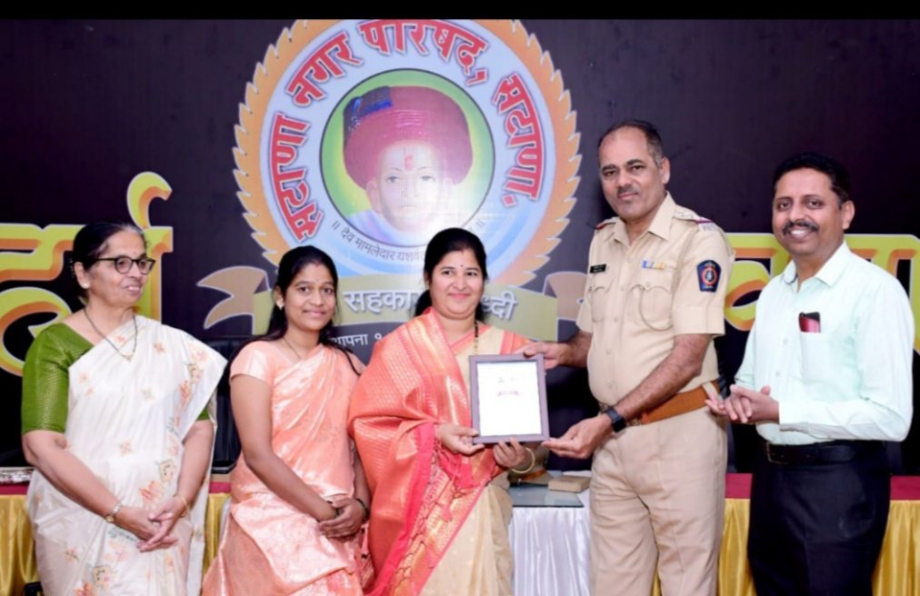 राज्यस्तरीय महिला रत्न पुरस्कार माननीय खासदार भगरे सर यांच्या हस्ते स्वीकारताना सरपंच सौ .क्रांती प्रमोद भामरे.